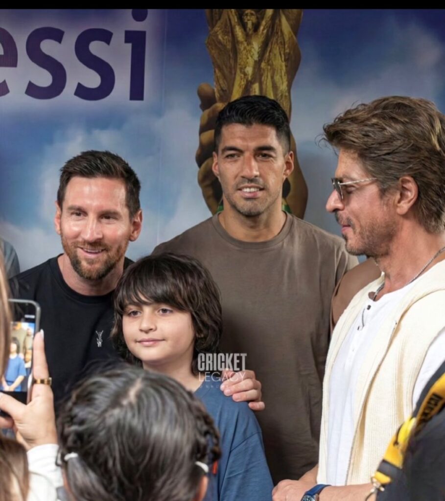Messi met Shahrukh and his son Abraham in Kolkata
